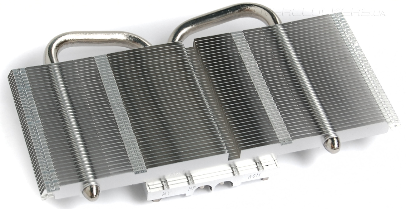 Трубки уложены в желобки массивного алюминиевого основания. Изгибаясь, они пронизывают ряд тонких пластин.