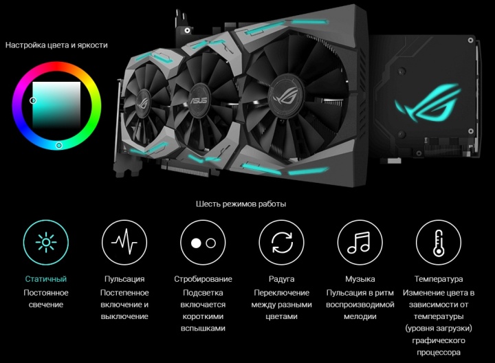 Оценить вариативность подсветки можно по ролику от компании ASUS, в котором заодно демонстрируются и другие технические особенности новых видеокарт Strix.