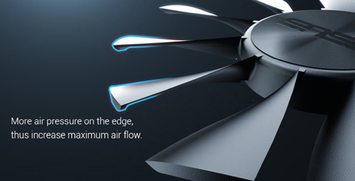 Лопасти вентиляторов имеют по краям небольшой «козырек», которые позволяет усилить воздушный поток и давление.