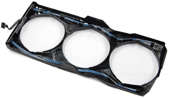 Сверху на радиатор монтируется рамка с тремя вентиляторами диаметром 90 мм.