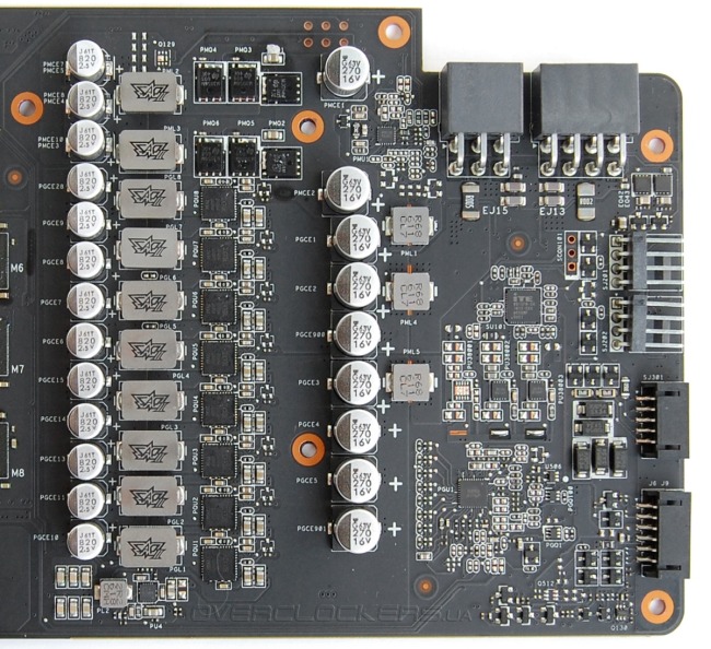 Печатная плата выполнена по нереференсному дизайну. Она крупнее стандартной по габаритам, усилена система питания.