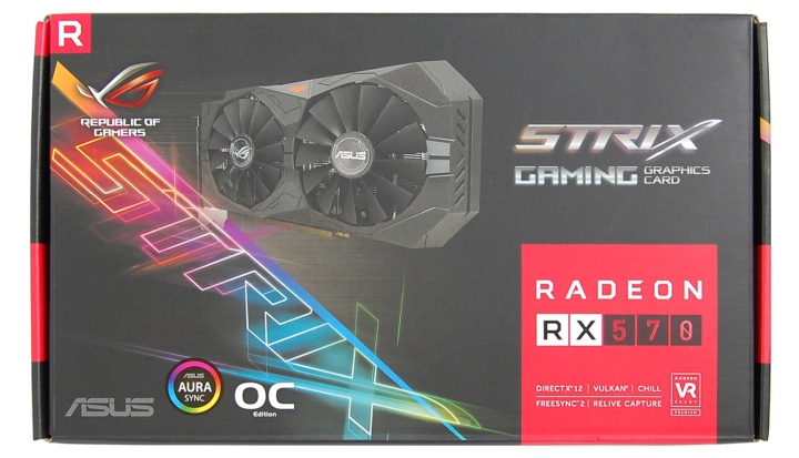 Видеокарта ASUS ROG-STRIX-RX570-O4G-GAMING поставляется в коробке средних размеров.