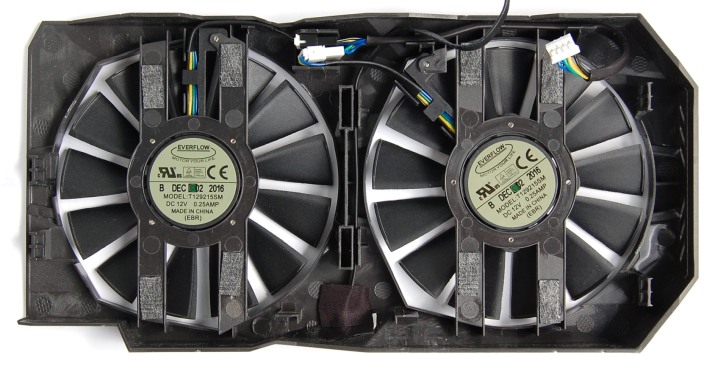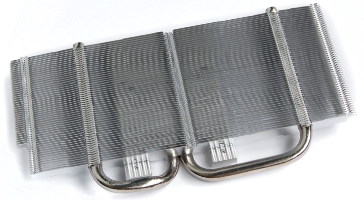 В конструкции кулера нет никаких изменений относительно ASUS Radeon RX 470. Две толстые тепловые трубки диаметром 8 мм проходят через основание и пронизывают ребра радиатора.