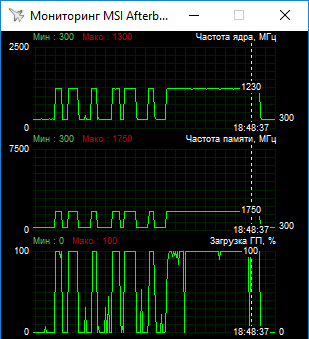 ASUS заменит в наших тестах обычную версию Radeon RX 570. Судя по другим обзорам, эти видеокарты демонстрируют высокий уровень частот. Если и есть просадки относительно заявленной верхней границы 1244 МГц, то небольшие. Поэтому выбран вариант с фиксацией частоты ядра на 1230 МГц.