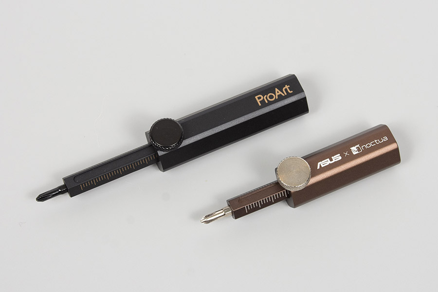 Стойка короче других, которые поставляются с картами Strix, TUF Gaming или ProArt, но функционально такая же. Ею можно как подпирать карту, чтобы предотвратить провисание ее тяжелой стороны, так и использовать вместо отвертки достаточно перевернуть штифт и закрепить его.