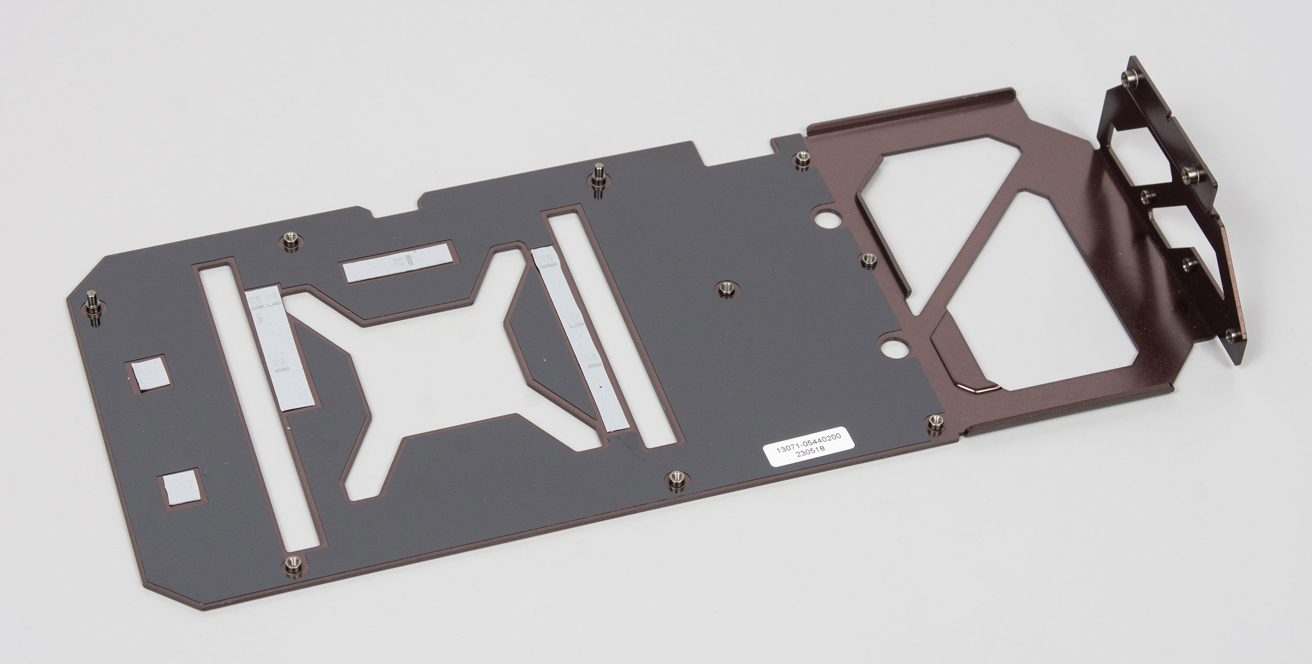 Задняя пластина несет не только декоративную и защитную функции, но и охлаждающую, для чего на ней размещены тонкие термопрокладки. Контактируют они только с несколькими конденсаторами.