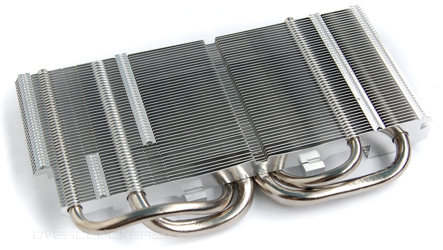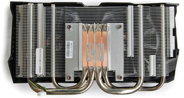 В охлаждении используется технология прямого контакта тепловых трубок с поверхностью графического процессора. Кулер насчитывает четыре тепловые трубки, две из которых большого диаметра — 8 мм. Именно с этими трубками и соприкасается GPU, тогда как с боковыми контакта нет.