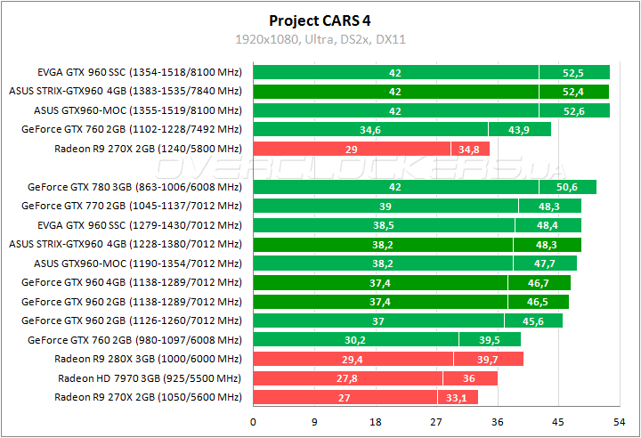 Список остальных конкурентов знаком по последним обзорам GeForce GTX 960. Единственным новичком будет Radeon R9 270X (в реальности Gigabyte GV-R787OC-2GD при откорректированных частотах). В разгоне протестированы только младшие соперники.