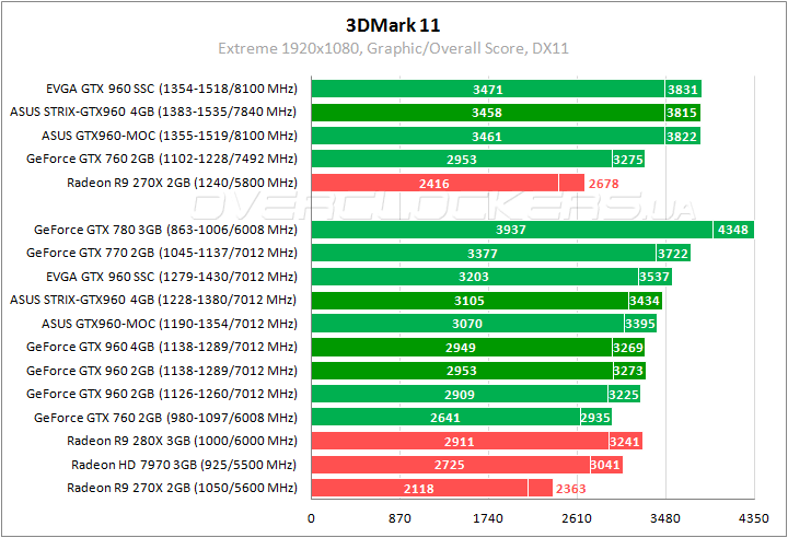 | Видеоадаптер | GeForce GTX 780 | GeForce GTX 770 | EVGA GTX 960 SSC ACX 2.0+ | ASUS STRIX-GTX960-DC2OC-4GD5 | ASUS GTX960-MOC-2GD5 | GeForce GTX 960 | GeForce GTX 760 | Radeon R9 280X | Radeon HD 7970 | Radeon R9 270X |