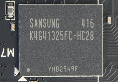 Распаяно восемь микросхем памяти Samsung K4G41325FC-HC28.