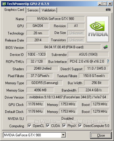 Для разгона ASUS мы использовали MSI Afterburner. Есть и родная утилита ASUS GPU Tweak, но она не дает никаких преимущества и пока еще ограничена по максимальному разгону ядра, не позволяя достичь 1,5 ГГц. Софтвольтмод, судя по реакции видеокарты, не работает. В результате экспериментов удалось достичь пикового значения Boost в 1509 МГц при базовой частоте 1383 МГц. Это чуть больше разгона референса. А вот память подвела. Ее разгон застопорился на 7630 МГц, далее начинались проблемы со стабильностью.