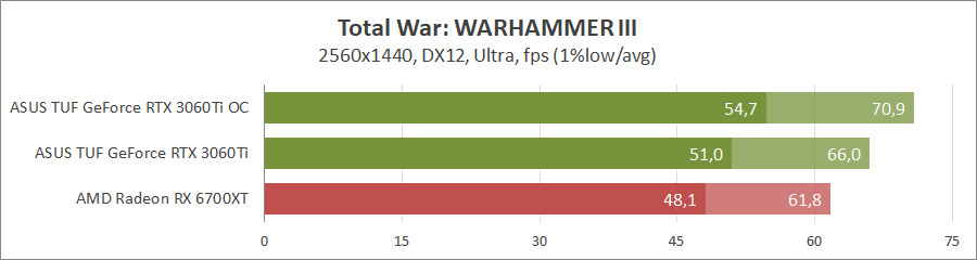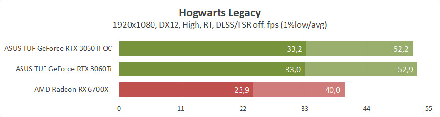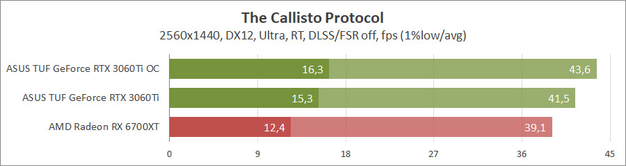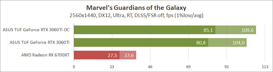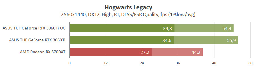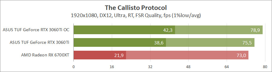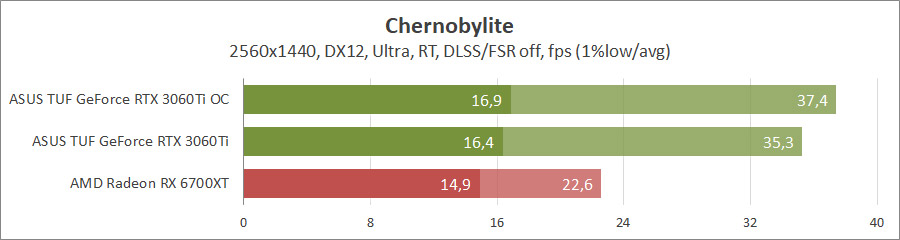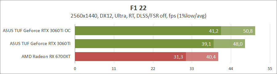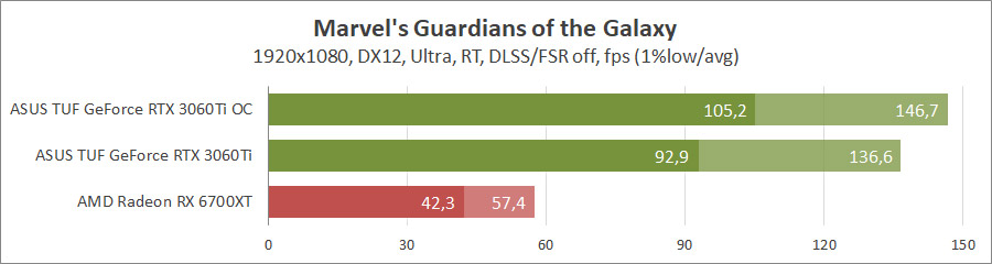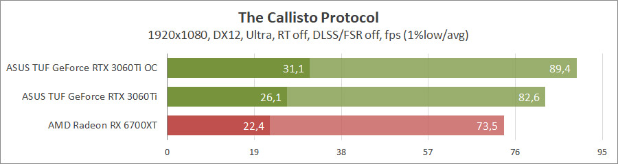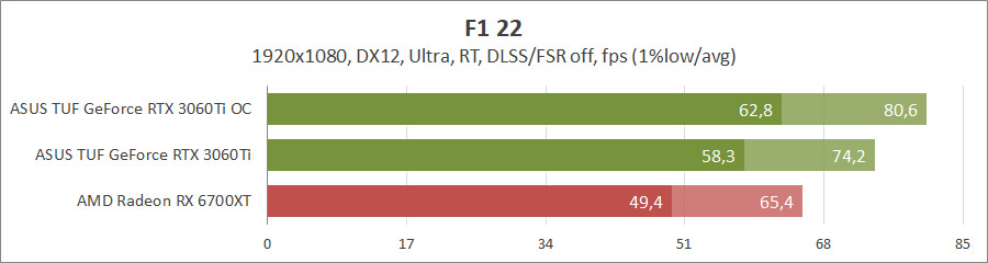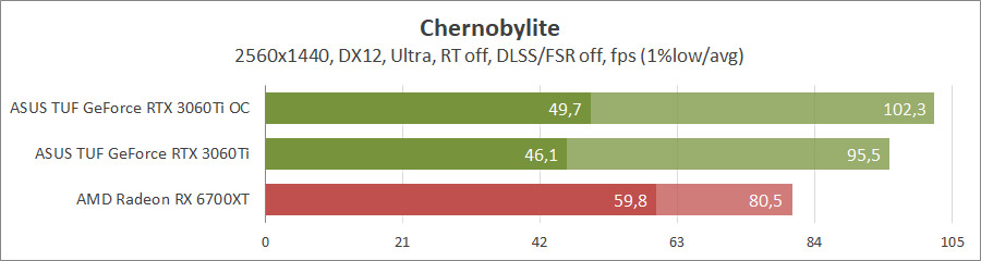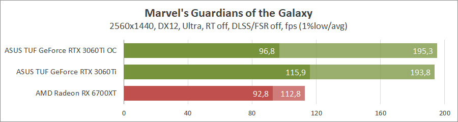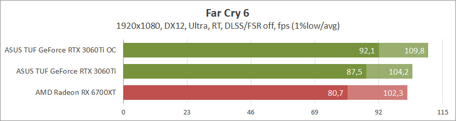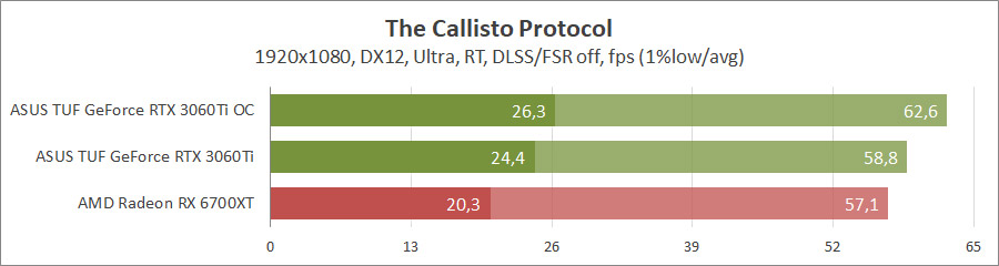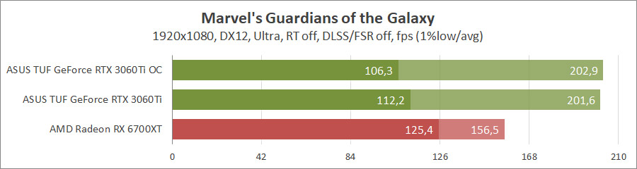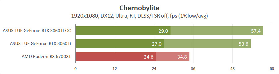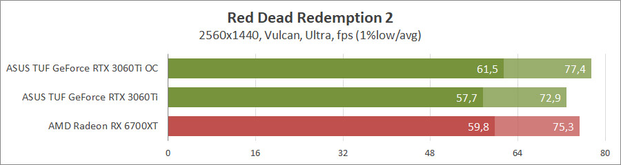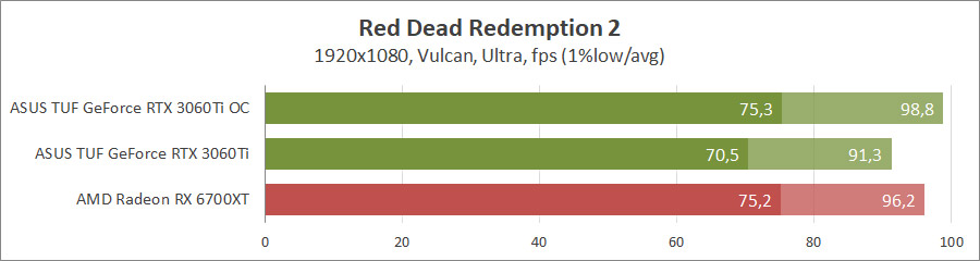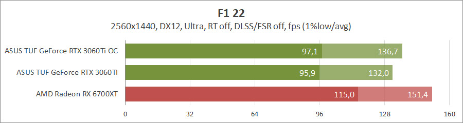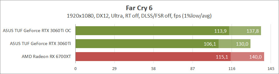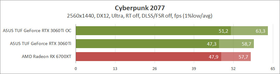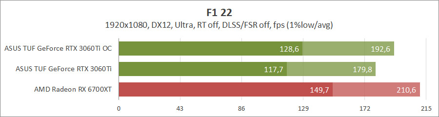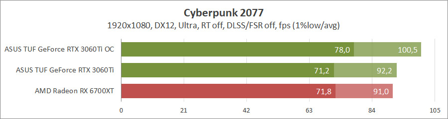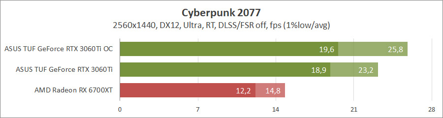GeForce RTX 3060 Ti на несколько fps отстает от конкурента, но разгон позволяет подтянуть результат.