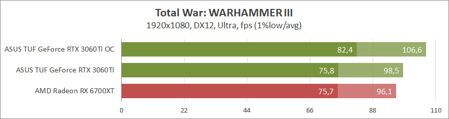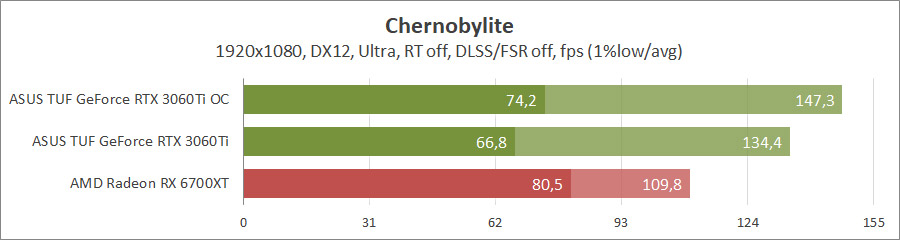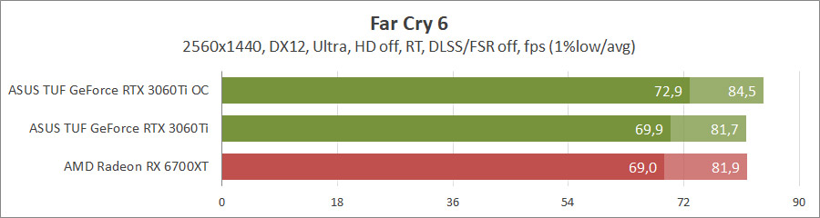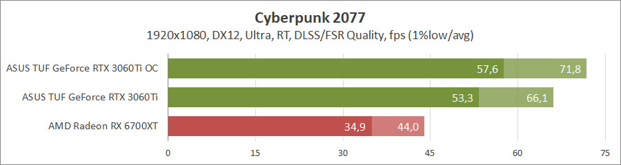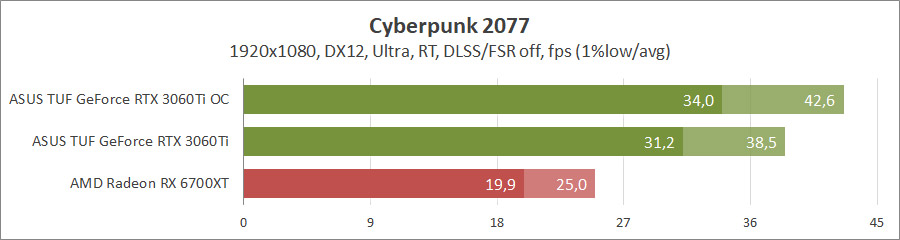| Видеоадаптер | ASUS TUF-RTX3060TI-8GD6X-GAMING | AMD Radeon RX 6700 XT |