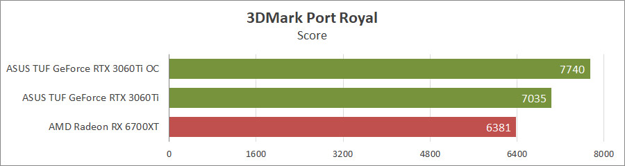 Результаты в старом тесте Time Spy лучше в Radeon, в то время как новые Port Royal и Speed Way благосклонны к карте Nvidia.