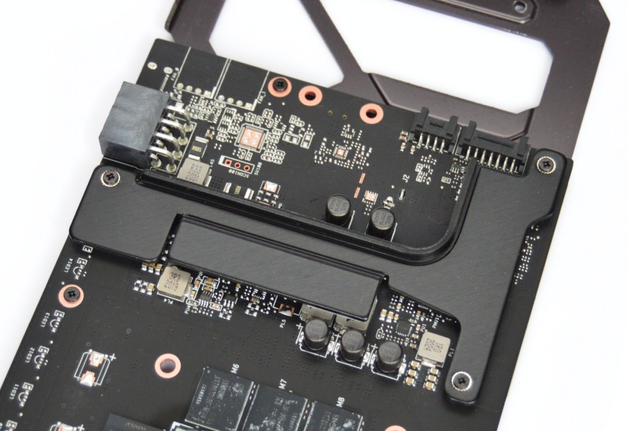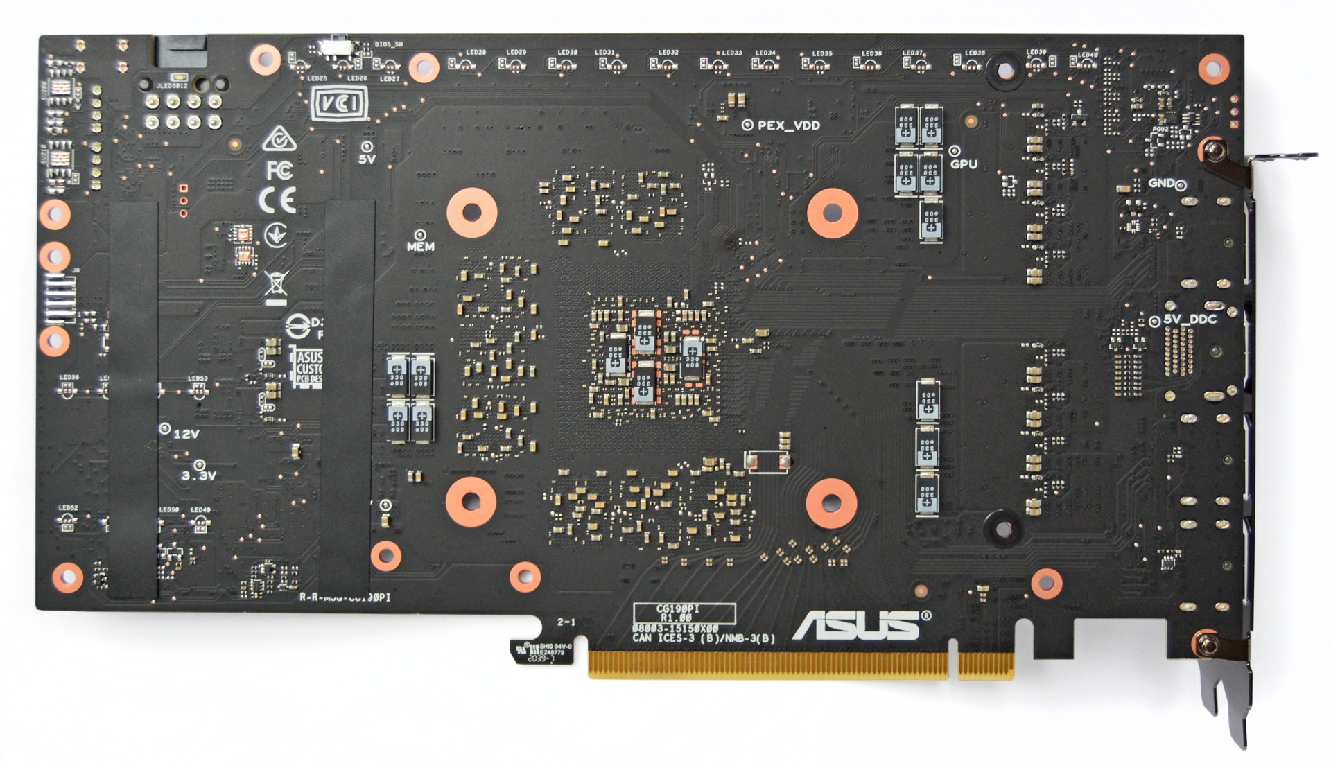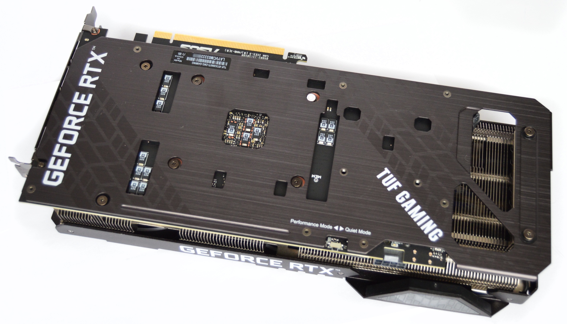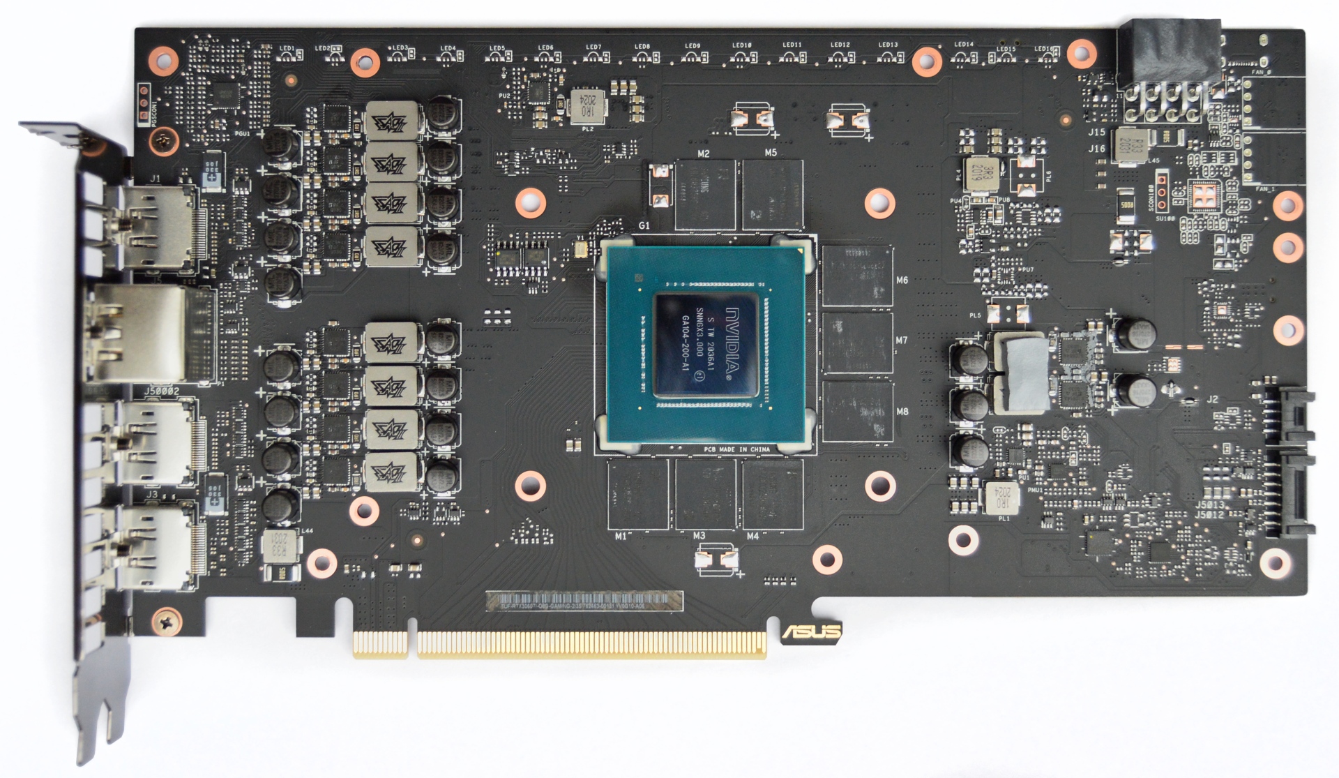Печатная плата напоминает плату ASUS TUF GeForce RTX 3070 с небольшими изменениями и упрощениями.