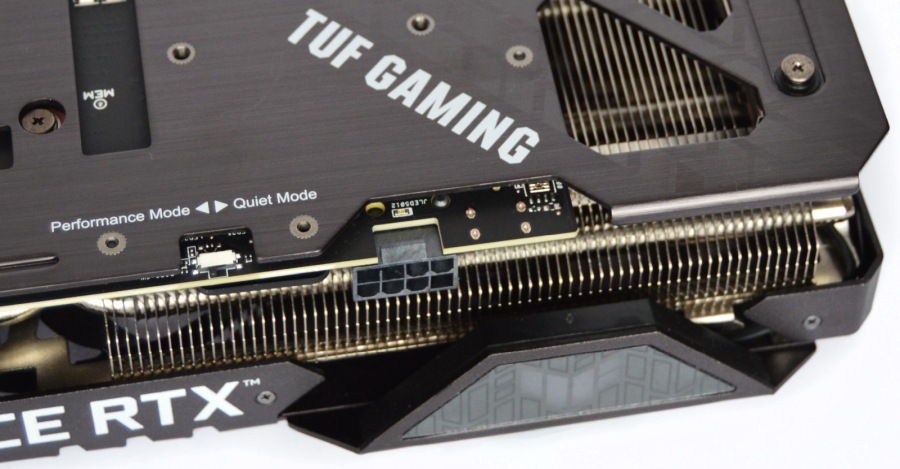У ASUS TUF присутствует один восьмиконтактный разъем питания. Есть переключатель BIOS для выбора стандартного (Performance) или тихого (Quiet) режимов.