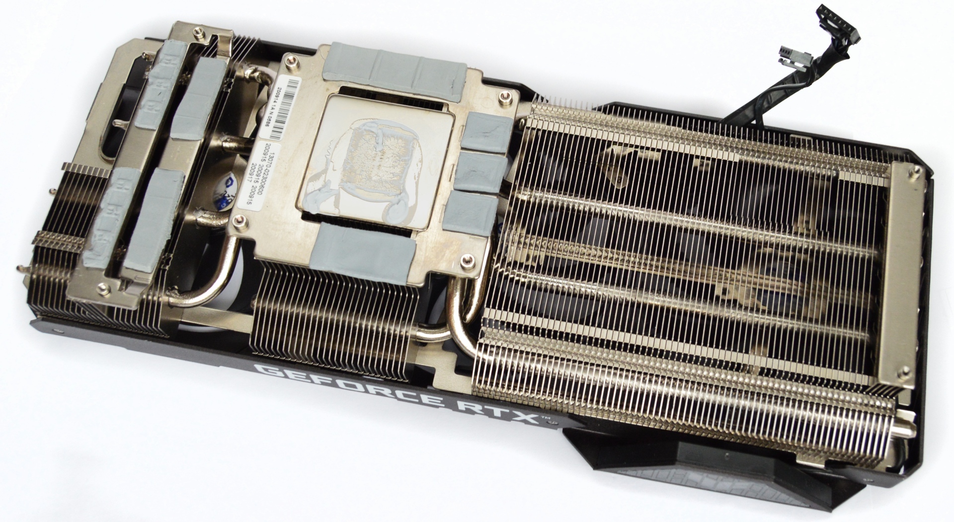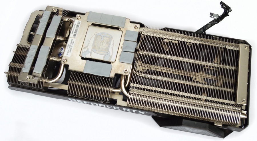 Система охлаждения идентична той, что установлена в ASUS TUF Gaming GeForce RTX 3070. Это крупный радиатор с четырьмя тепловым трубками.