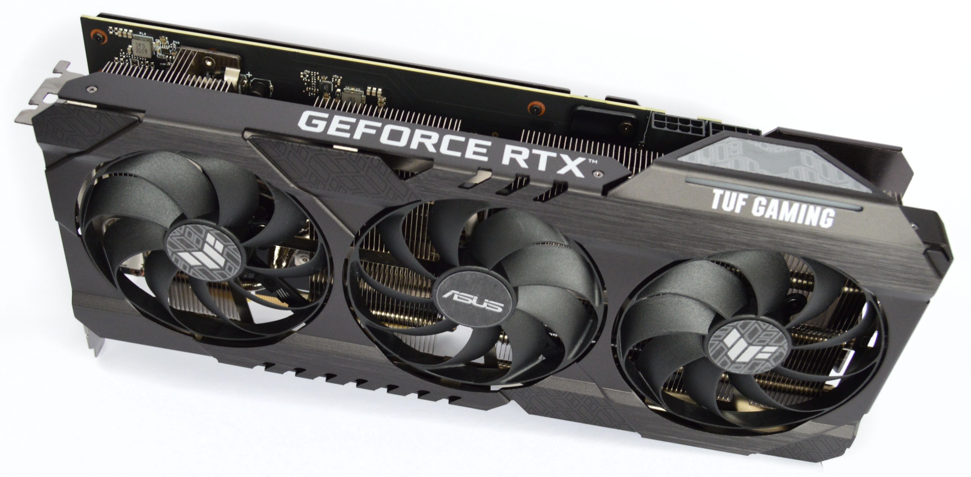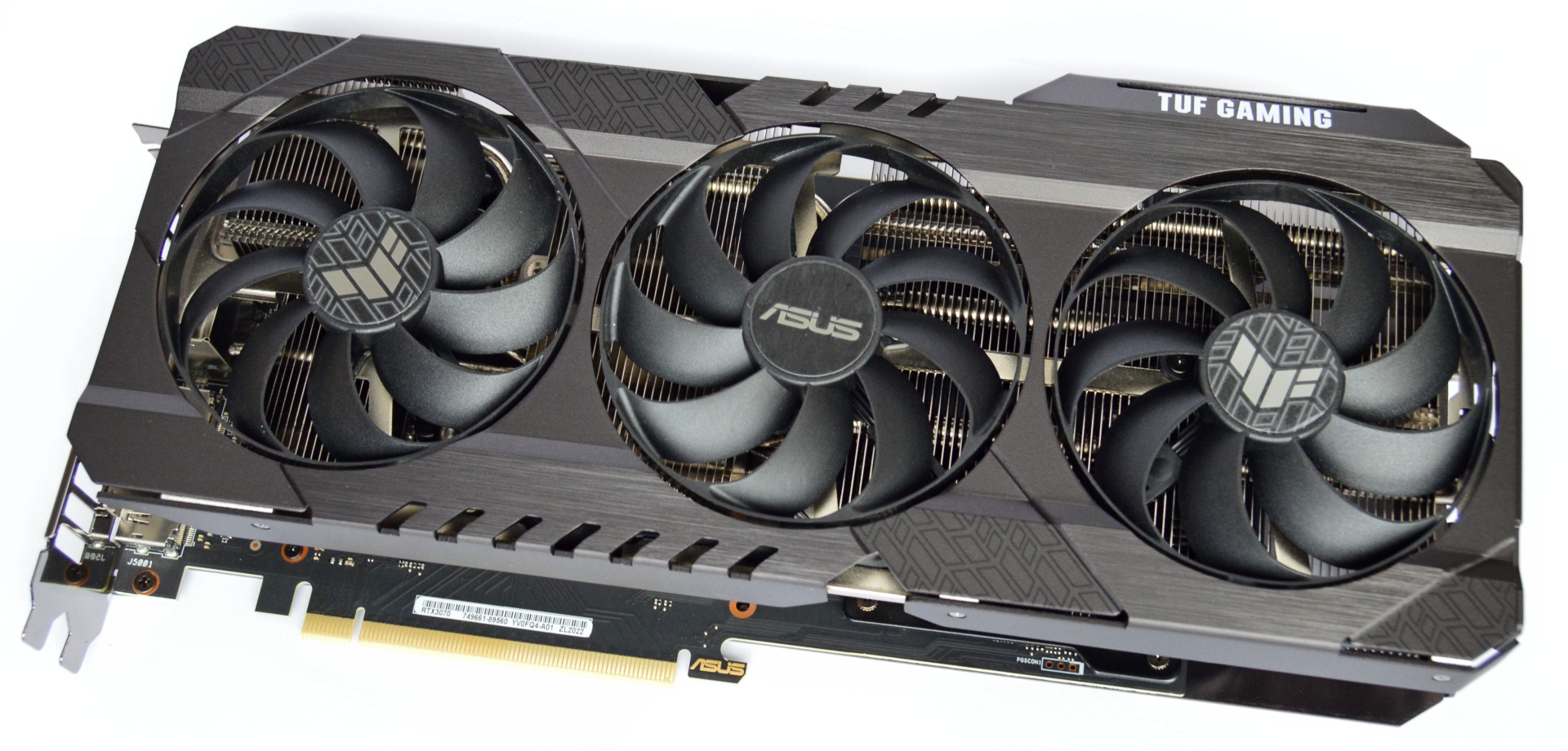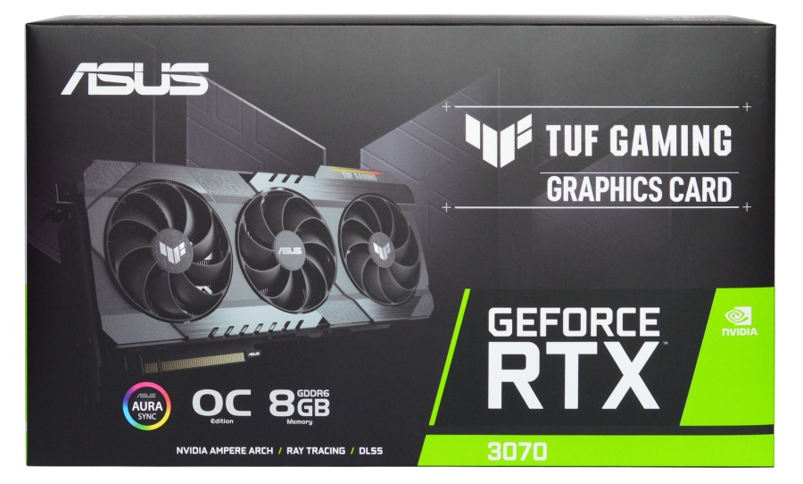 В наши руки попала нереференсная видеокарта с улучшенным охлаждением. Это ASUS TUF Gaming GeForce RTX 3070.