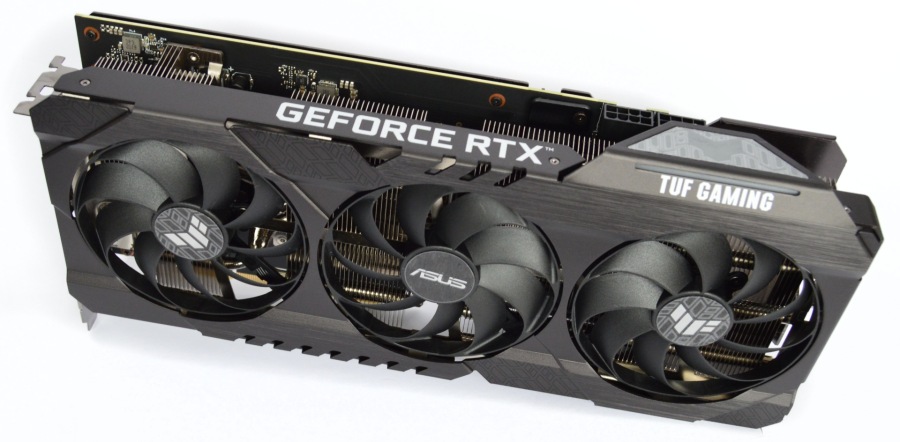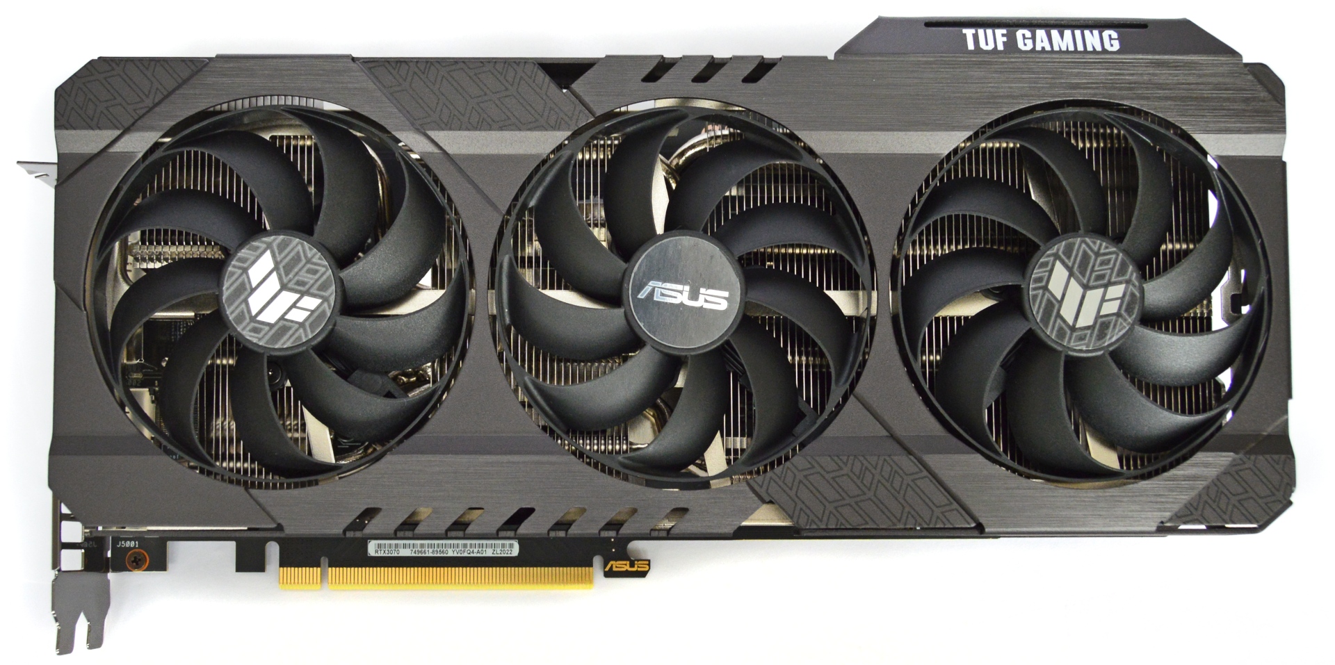 Визуально видеокарта напоминает копию старшей модели ASUS TUF Gaming GeForce RTX 3090, хотя конструкция охлаждения проще. Полная длина 30 см.