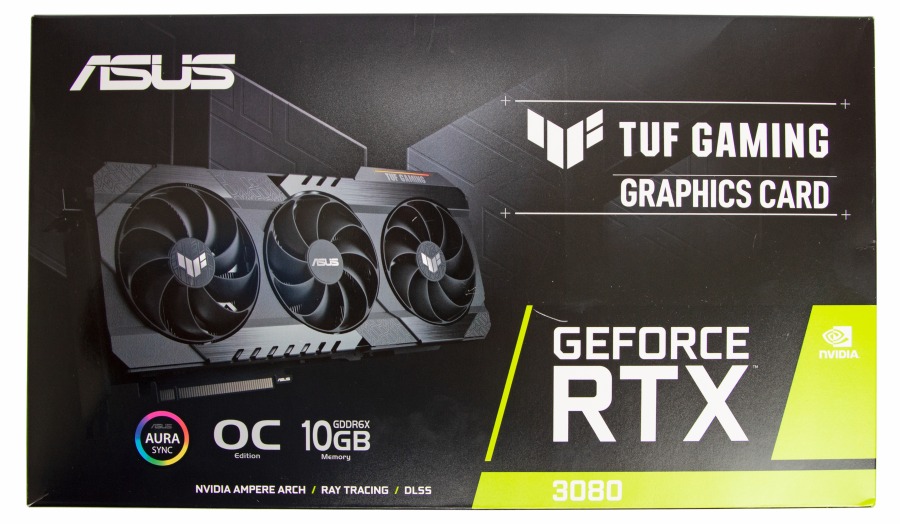 Видеокарта ASUS TUF Gaming GeForce RTX 3080 OC Edition поставляется в крупной коробке. Внутри она зафиксирована в форме из вспененного полиэтилена.