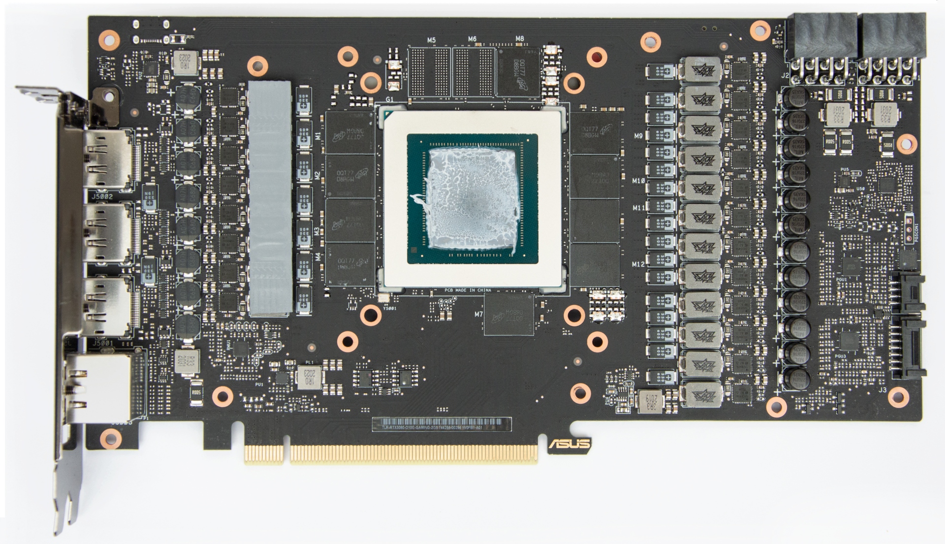 GPU запитан от 16-фазного преобразователя напряжения. Всего же плата насчитывает 20 фаз питания.