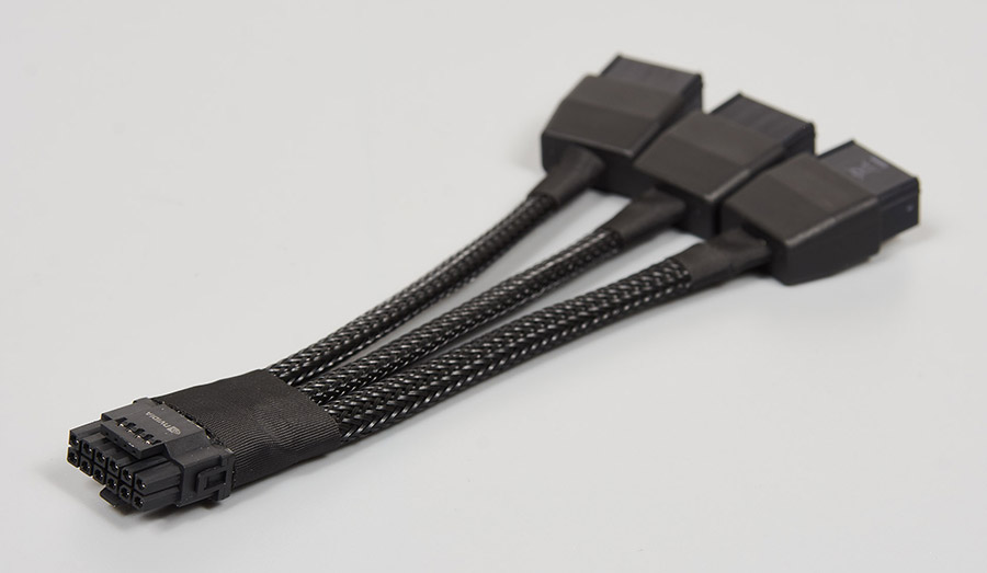 Переходник рассчитан на подключение к трем кабелям от блока питания с 8-контактными разъемами, при этом все контакты на коннекторе 12VHPWR находятся на месте.