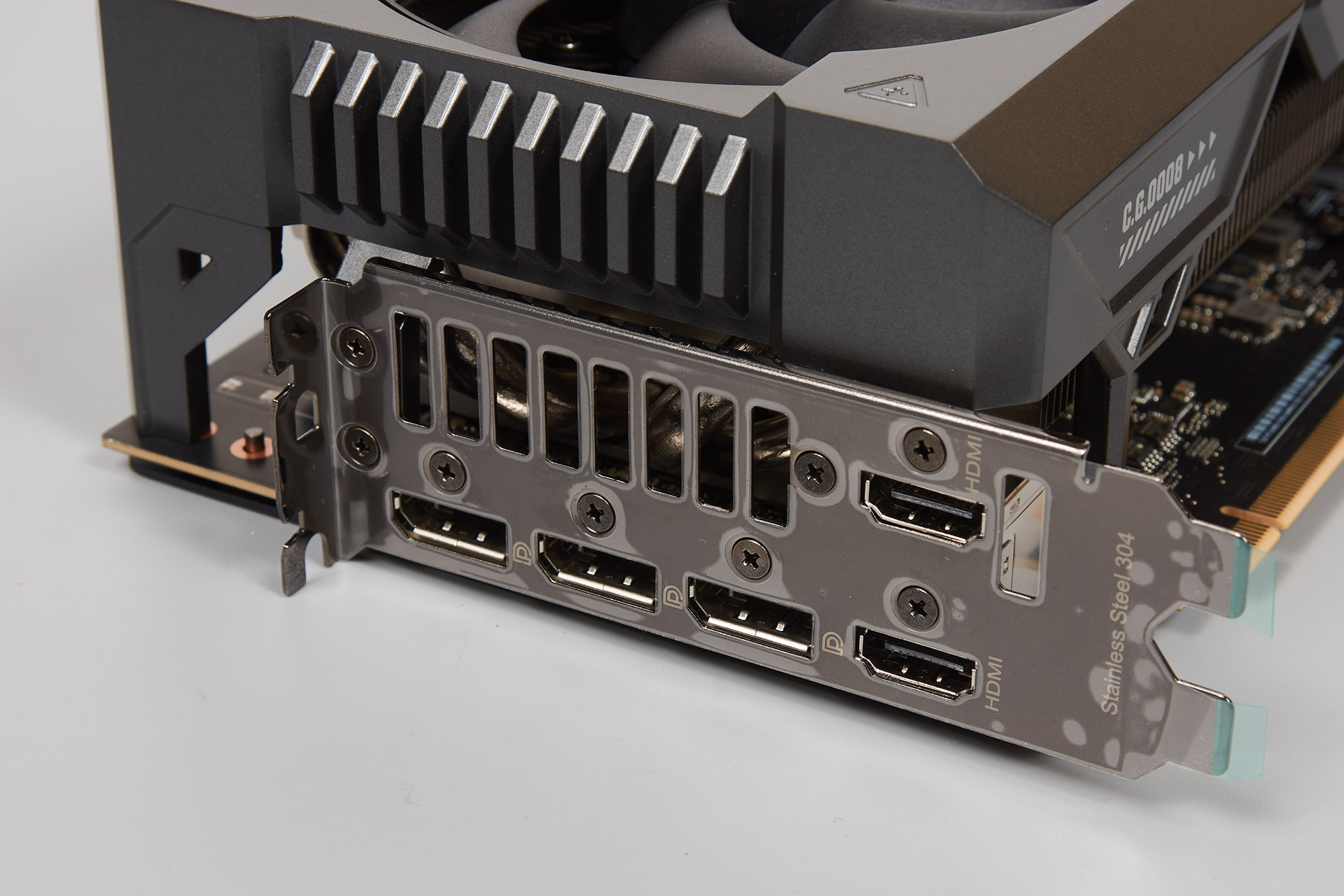 Базовая частота GPU составляет стандартные 2205 МГц, в то время как Boost повышен до 2595 МГц, а в OC-режиме чип может работать на 2625 МГц. Память работает на эффективных 22,4 ГГц.