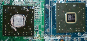 На нижеследующем снимке представлены чипы Sapphire 9600 SE (слева) и Gigabyte 9550: