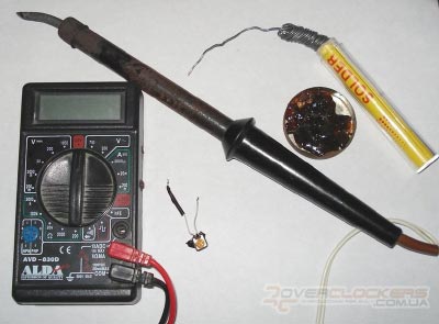 Напряжение чипа по умолчанию - 1,2 В. Маловато, не так ли? Ведь, как установлено на практике, максимально допустимое напряжение лежит в пределах 1.65-1.7 В! На сей раз возможность потери гарантии меня не интересовала (гарантия год как закончилась), посему я решил взяться за паяльник.