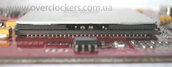 Джентльменский набор: разъем D-Sub, TV-out, обычный радиатор на чипе (хотя плата рассчитана и на активное охлаждение). Вот только памяти не хватает на лицевой стороне, как и на обратной – чип то мобильный :) .
