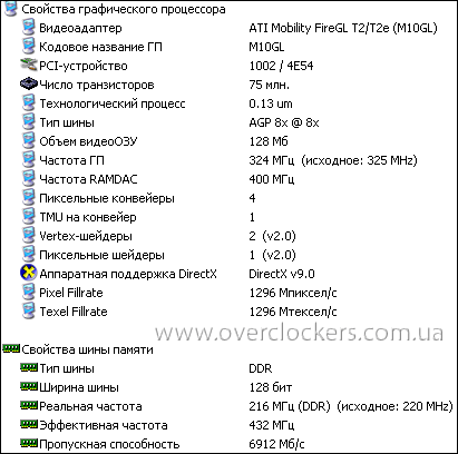 Как оказалось, сердце данной видеокарты - ATI Mobility FireGL T2, который является производным ATI FireGL 9600. Чип Mobility FireGL T2 был анонсирован 13 ноября 2003 года и предназначался для мобильных рабочих станций. А теперь производители видеокарт избавляются от излишков данных чипов вот таким образом, просто распаивая на платы от обычных Radeon 9600.