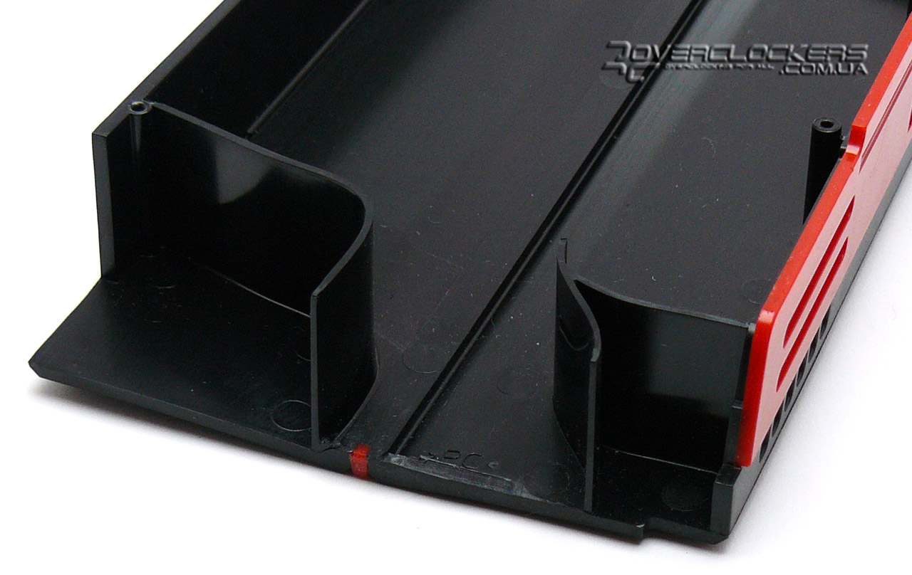 Поток воздуха, прошедший через радиатор, делится на две части за счет направляющих, одна из которых выходит через отверстия на монтажной планке, а вторая — через прорези в верхней части кожуха. С таким кулером вентилятор на задней стенке системного блока явно лишним не будет.