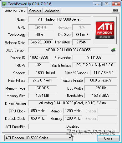 Рабочие частоты Radeon HD 5870 равны 850 МГц для чипа и 4800 МГц для памяти. При слабой нагрузке они снижаются до 157/1200 МГц (ядро и память соответственно).