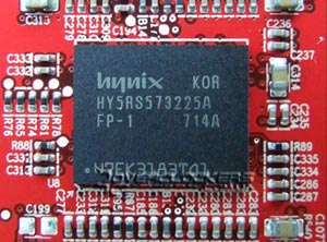 На плате установлены чипы памяти Hynix со временем доступа 1 нс, что соответствует частоте 2000 МГц. Это внушает надежду на хороший разгон относительно стандартных частот.
