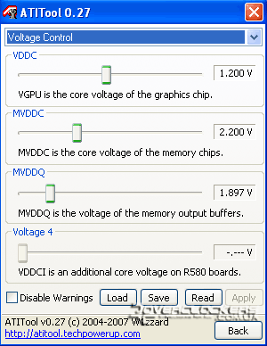 Последняя версия ATITool обзавелась возможностью регулировать напряжение на графическом ядре и чипах памяти видеокарты 2900XT.