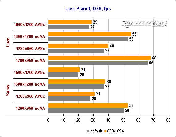 Lost Planet - еще один "новичок", портированный с Xbox 360. Для теста использовалась Demo-версия игры под DirectX9.