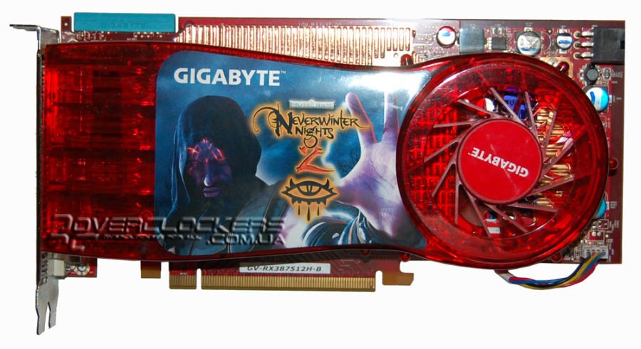 Единственное, чем выделяется GV-RX387512H-B от остальных рефренных плат, так это комплектация игрой NeverWinter Nights 2. Персонаж из игры украшает и коробку.
