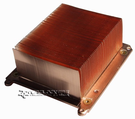 Стандартная система охлаждения представляет собой кулер турбинного типа. Сам радиатор небольшой, но выполнен из меди и имеет множество тонких ребер, сквозь которые воздух прогоняется расположенным сбоку вентилятором. Основание радиатора имеет ровное, хотя и не полированное основание. Вокруг зоны контакта с чипом наклеена защитная диэлектрическая пленка.