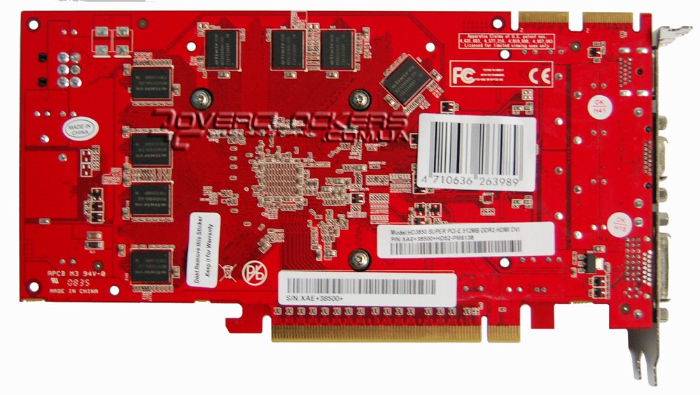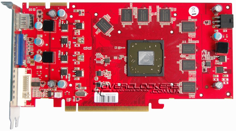 У данной модели есть 6-контактный разъем дополнительного питания. Судя по техническим отверстиям вокруг чипов памяти и силовых элементов подсистемы питания, на плату предполагалось установить радиатор для их охлаждения. Возможно, радиатор устанавливается (устанавливался) на более дорогие модификации Radeon HD3850 на базе такого дизайна. О «бюджетности» данной модели так же свидетельствуют и нераспаянные элементы на плате.