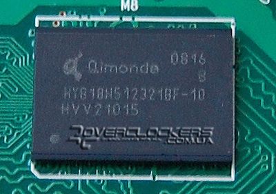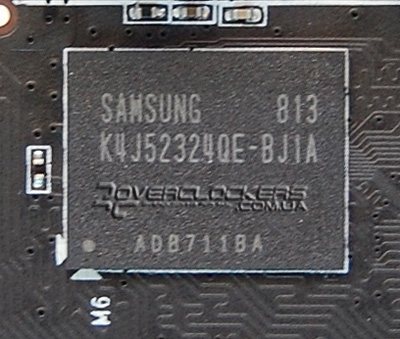 На плате распаяно шесть чипов памяти Samsung 1,0 нс (рассчитанных на 2 ГГц) емкостью 64MB на шине шириной 192 бит.