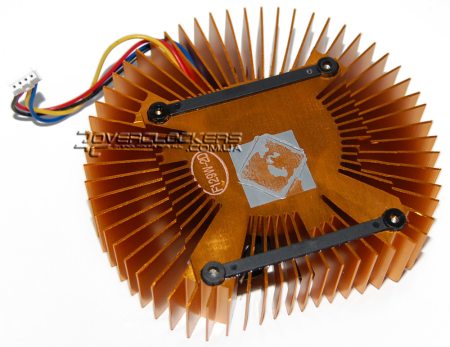 Вентилятор системы охлаждения не регулируется и постоянно работает на максимальных оборотах. Температура чипа он поддерживает довольно низкую, на уровне 63 °C (в открытом корпусе), но уровень шума при этом высокий.