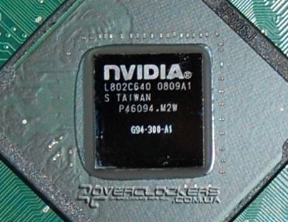 Графический процессор G94 расположен под углом 45° и окружен защитной рамкой.