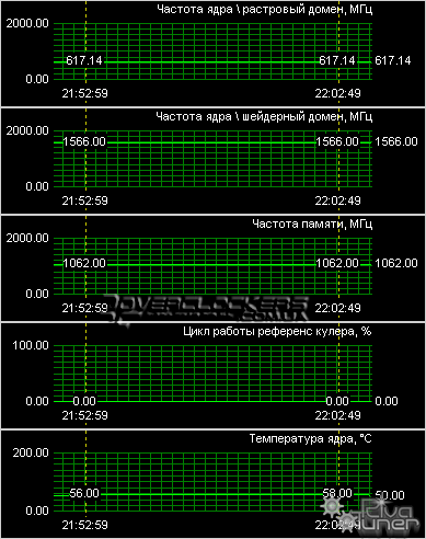 Для повышения стабильности в разгоне обороты кулера были выставлены на максимум, температура ядра при этом не превышала 60 °C.