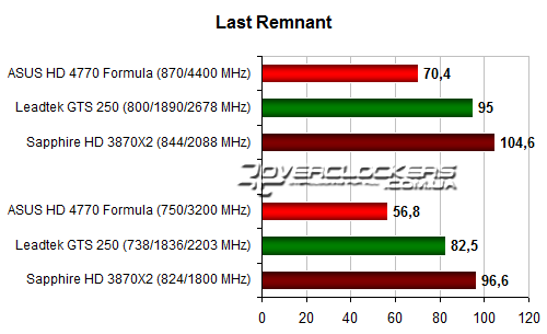 Для тестирования в этой игре использовался специальный The Last Remnant Bencmark, который прогонялся по два раза.