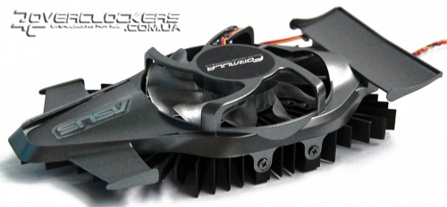 Все эти минимальные, вроде бы, улучшения и дают те заявленные 33% преимущества над системами охлаждения референсных карт. Учитывая небольшое тепловыделение 40-нм графического чипа, и простую конструкцию стандартной системы охлаждения, инженерам ASUS этого удалось добиться без использования тепловых трубок или испарительных камер.