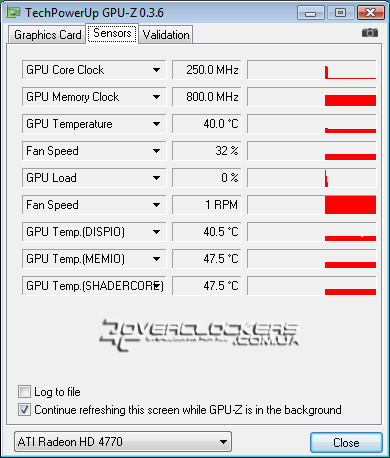 Кстати, о поддержке данной серии видеокарт утилитой Riva Tuner. В еще первом материале мы описывали, каким образом добавить поддержку HD 4770 в данную программу, но на всякий случай (для тех, кому лень искать) еще раз повторимся. Открываете файл RivaTuner.cfg и к строке «RV770=9440h-9442h, 944Ch» дописываете 94B3h, после чего будут доступны и возможности разгона и управления кулером для данных видеоадаптеров. Вот только частота GPU, как вы могли заметить на верхнем скришоте, будет определяться неверно.