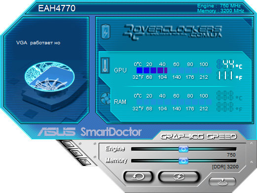 Рабочие частоты видеокарты, не смотря на ее «гоночный» вид, не отличаются от стандартных: ядро функционирует на 750 МГц, память на 800 МГц (эффективные 3200 МГц).