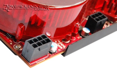 Плата оснащена двумя разъемами дополнительного питания: одним шестиконтактным и одним восьмиконтактным. Согласно официальным данным энергопотребление этой модели составляет внушительные 200 Вт. Для сравнения отметим, что одночиповый акселератор Radeon HD 4890 потребляет не более 190 Вт в пике, а «последователь» в лице Radeon HD 4870 X2 до 285 Вт.