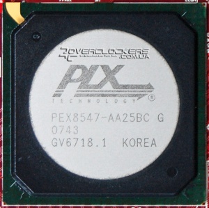 Большой чип PLX PEX8547, который находится между двумя GPU является тем самым коммутатором-мостом, связывающим их по линии PCI Express 1.1.