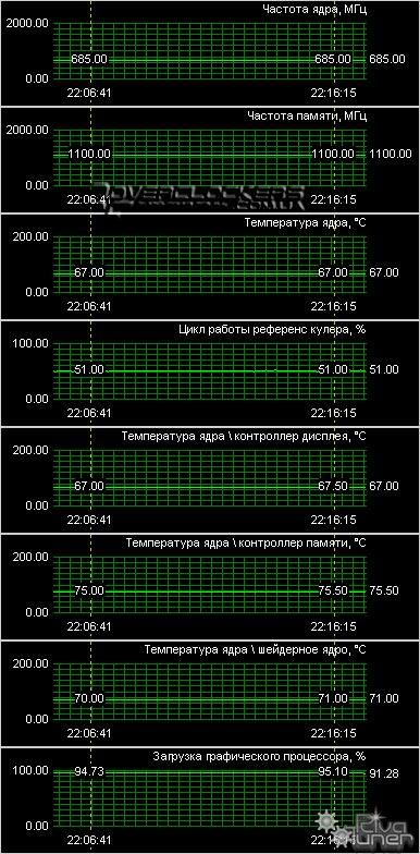 Разгон это видеокарты оказался не выдающимся. Ядро разогналось всего-навсего до 685 МГц, а память до 2200 МГц.